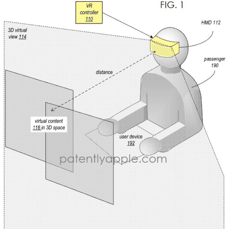 ▲苹果专利图1显示了驾驶员佩戴VR头显操作VR驾乘系统的示例
