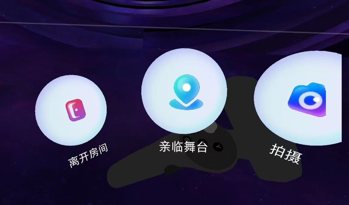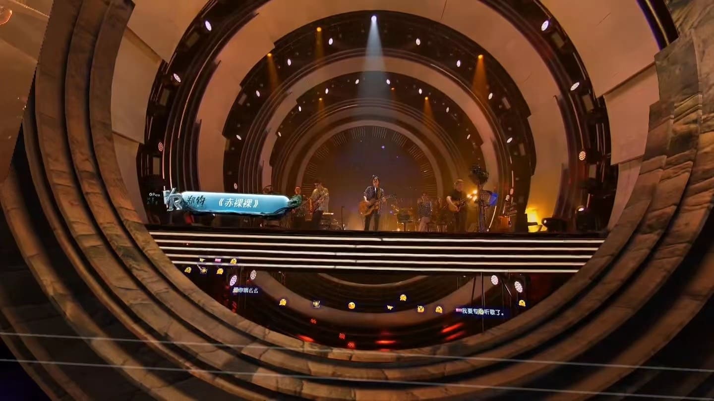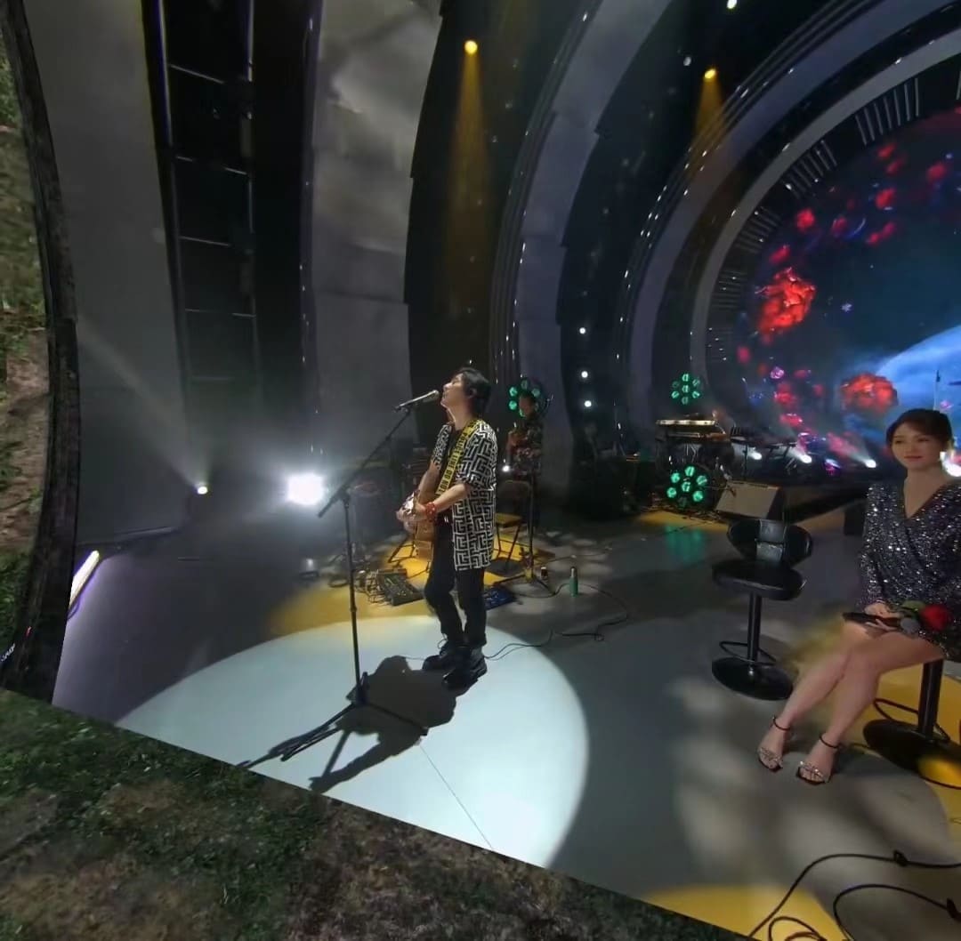 用户可以通过扭动手柄实现全自由度观看视角,调整位置自我掌控观看视角,自由调整与郑钧和舞台之间的距离,体验多角度的观看位置切换与互动视角。更创新性增加了“亲临舞台”视角,用户点击“亲临舞台”按键即可来到舞台,实现“站在舞台上面对面”听歌的体验。