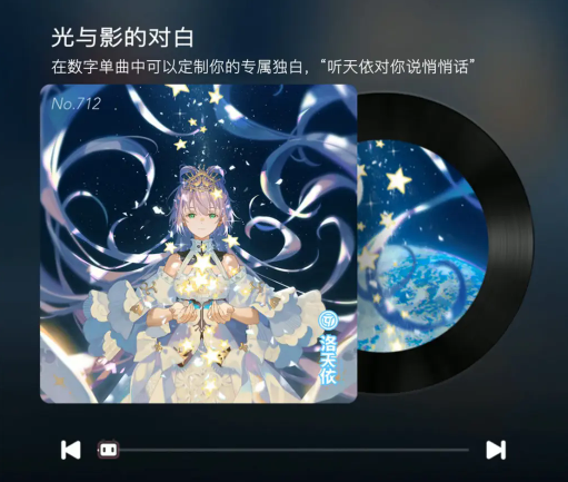 据悉,“洛天依十周年系列”限量2022套,其中9套将作为奖品空投给用户。每套藏品中包含一张“干杯!洛天依”联名款原创数字头像、一首可定制独白的十周年特别纪念版数字音乐单曲《光与影的对白》,以及配套的专属单曲封面。