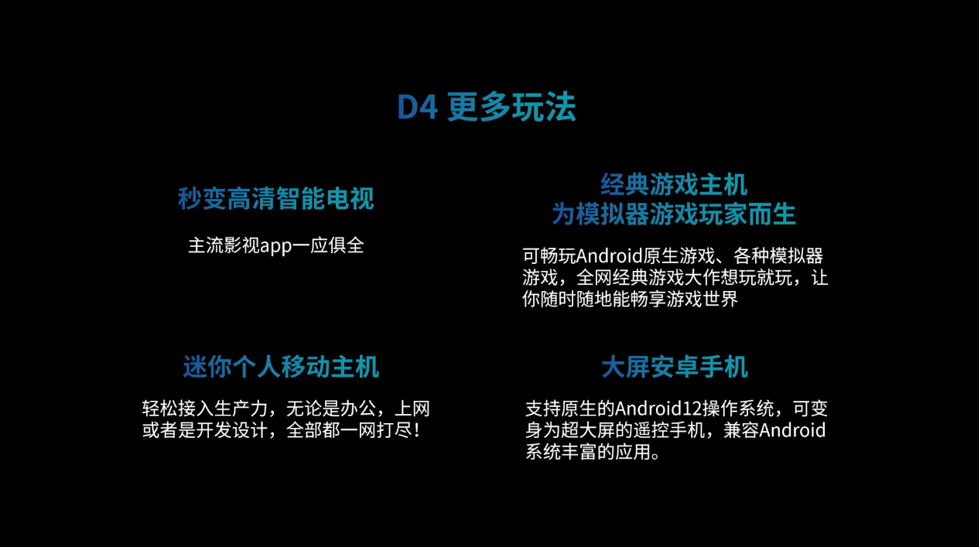 此外,播放器GOOVIS D4搭载瑞芯微新一代旗舰级RK3588S芯片,支持8K传输、解码,硬件性能和解码能力大幅提升,可以说是专为高清移动观影打造。D4内置定制版应用市场和在线影院,可安装海量应用以及观看国内外经典大片。