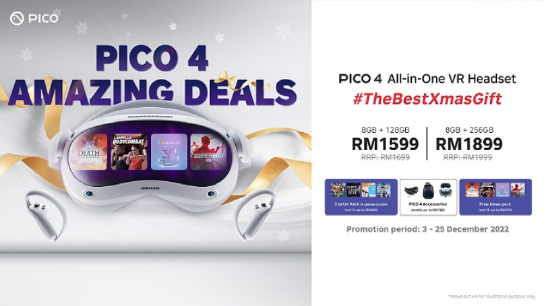 PICO 还推出圣诞礼包,除了多个配件外,还赠送四款价值 RM477 的游戏。在 2023 年 1 月之前,客户有资格获得 PICO Starter Pack,让他们有权免费获得另外四款价值 RM440 的游戏。