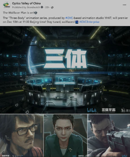 值得一提的是,作为亚洲首部获得雨果奖的科幻作品,《三体》以其深刻的思想内蕴及丰富科幻想象力享誉全球。在海外,这部作品也有大量粉丝,12月9日,中国光谷脸书账号发布开播预告后,就有3000余人留言互动。