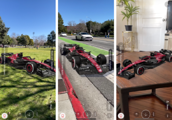 为了进一步增强车迷的体验,该公司还推出了一个 AR 滤镜,车迷可通过智能手机将新赛车模型投射到现实空间中,以更直观地观看赛车外观设计。