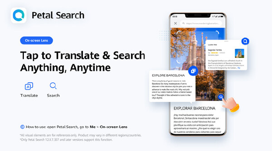 此外,Petal Search 还提供 On-screen Lens 功能。在常规模式下,此功能识别屏幕上的内容并显示相关的搜索结果,例如有关图像中的对象和类似图像的信息。在翻译模式下,用户可以翻译屏幕内容并随时保存翻译结果,让浏览网站和阅读外语新闻成为一种轻松的体验。