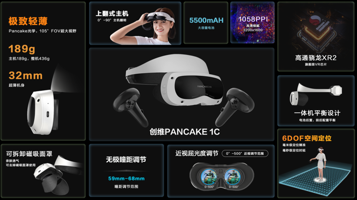 创维XR隶属于创维集团旗下产业子公司,此次联合打造发布的这款VR眼镜就是创维XR去年发布的新品——PANCAKE 1系列,轻量级VR产品优势明显,创维PANCAKE 1系列整机仅重436g,主机189g,是目前市场上最轻薄的VR一体机,外加零压感韧性头箍,可以长时间舒适佩戴,并且创维PANCAKE 1系列左右眼各支持0~500°近视调节,适合绝大部分近视车主人群需求。