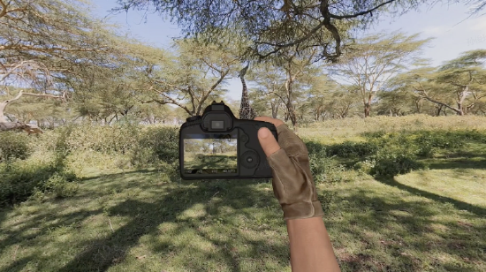 除了打造跟着德爷闯东非的沉浸视听之外,PICO还结合德爷的探险故事线,巧妙设计了诸多互动体验,让用户们对德爷的探险拥有了更多参与感。手握PICO VR一体机的手柄,用户就可以在VR互动纪录片中看见自己虚拟建模的双手。与此同时,用户在探险过程中,还能随时呼出左手手表中的地图、相机、日志等虚拟工具,完成“查看当前位置”、“拍摄360度草原风景”、“与德爷和野生动物合照”、“翻看探险笔记”等操作。