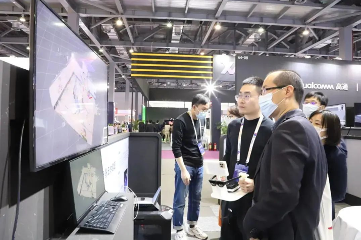 本次大会,影创科技除了在展位上展示“鸿鹄(Hong Hu)、即墨(JIMO)、Action One Pro”这三款大家耳熟能详的“明星”产品外,还集结了一批行业前沿的合作伙伴:趣立科技、蓝软宇影、达龙云电脑、千博信息、华东交通大学,展示了一系列覆盖文旅、医疗、教育、工业、游戏等领域的5G+XR产品技术内容和解决方案。