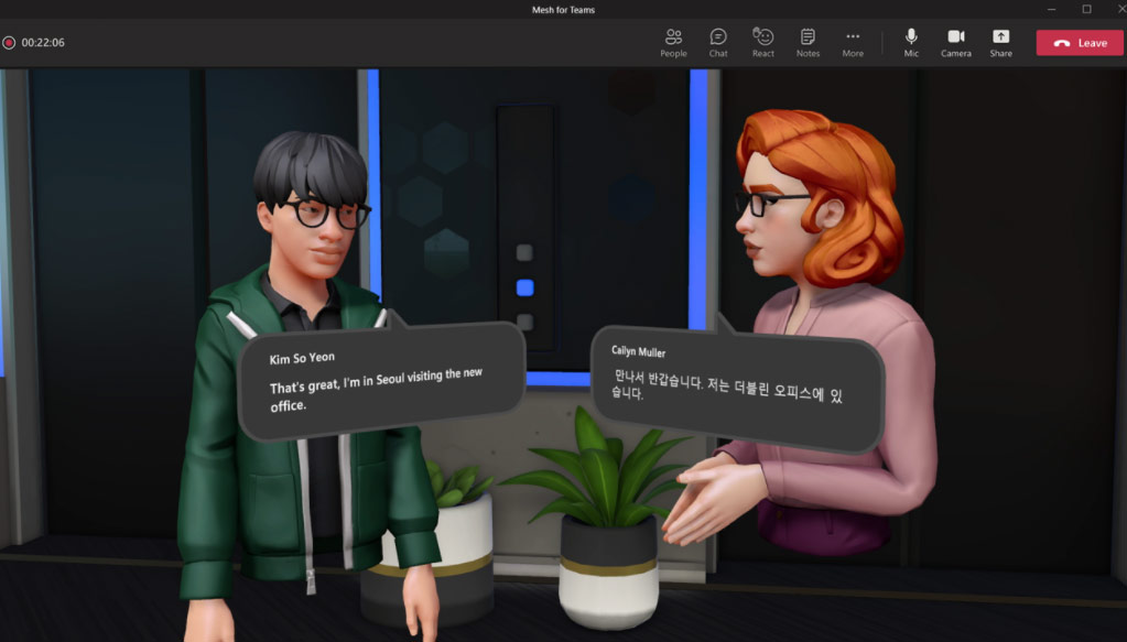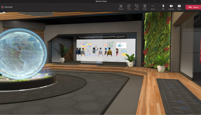 对于Mesh for Teams的大多数用户而言,你可以选择通过定制的虚拟化身加入标准Teams会议,而不再是静态图片或视频。企业同时可以在Teams内建立沉浸式空间,建立一个元宇宙。Mesh for Team用户可以将自己的虚拟化身带入所述空间,然后就各种项目进行协作,并体验能够激发创新的偶然相遇。