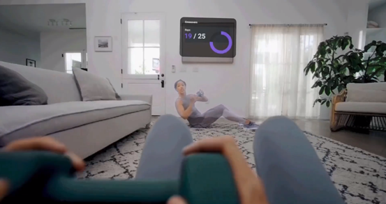 简单来说,就是实现全息影像功能。我们可以通过VR设备,看到一个身处不同空间的三维真人影像。在疫情肆虐地球的当下,全息影像的功能显得尤为重要。在Meta公布的视频中,我们也看到了未来新健身的模式,在任何场合,都会有全息教练在用户眼前指导用户如何健身。不仅如此,体积视频还能用于远程会议场景。会议是办公里最无法克服空间问题的一项内容,而虚拟会议能够彻底解决解决空间所带来的无法跨越的鸿沟。