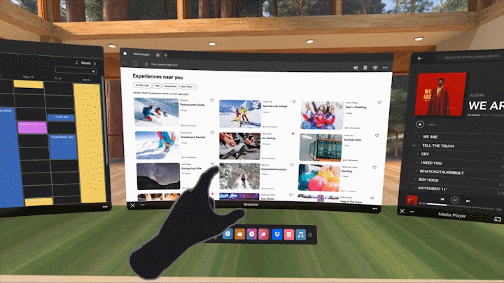 由于各种原因,许多人都需要多显示器设置。但由于物理空间的限制以及多显示器需考虑成本等多种因素,无法实现多屏办公。然而,在虚拟现实的加持下,我们可以坐拥多屏3D交互,办公、社交、观影、游戏、音乐等等,你想要的都可以同时进行。最重要的是,它既没有物理空间的限制,也没有成本预算这种现实问题的考量。伴随着自然手势与虚拟键盘功能的推出,多任务3D屏幕将成为未来用户的办公首选。无论用户身处何处,只要有一个VR设备,便可以扩展自己的工作空间,实现办公、社交、娱乐无缝切换。21世纪的我们,生活的主力依靠着手机与电脑、平板等电子产品。畅想一下未来,以上这些产品都被压缩成一个便携式设备,是何等便捷?