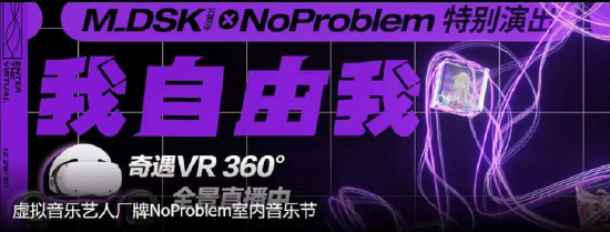 近日,由国内虚拟偶像平台型服务商万像文化联合摩登天空共同打造的虚拟音乐艺人厂牌NoProblem在2021年岁末推出了“M_DSK五周年× NoProblem特别演出”。此次演出由NoProblem联合国内知名Hip-Hop厂牌M_DSK倾情打造,送给粉丝们的一场年末回馈。并授权国内知名VR品牌——爱奇艺奇遇,以及爱奇艺直播特殊呈现,共同探索虚拟偶像音乐娱乐互动新场景。