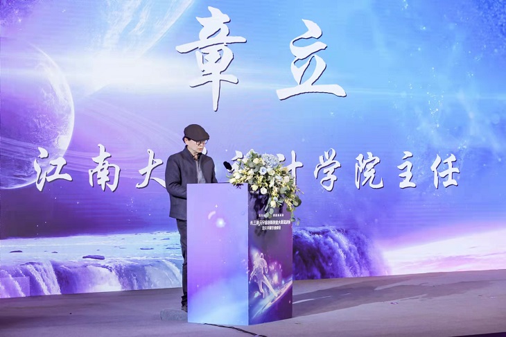 江南大学设计学院主任章立代表高校教师进行了发言,介绍了元宇宙时代下信息形态的特征。元宇宙影响了数字艺术,改变了传统审美的标准,如何把握受众和审美趣味的变化,成为了当今设计师面临的问题。因此,高校需要培养具有良好的人文素质、艺术修养和敏锐洞察力的学生。而作为高校老师,不仅应该让学生掌握专业知识,还需要教给学生思考问题和解决问题的能力。