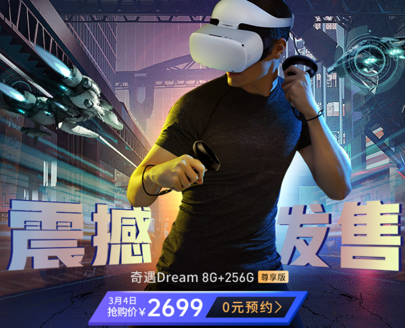 近日,国内知名VR一体机厂商爱奇艺奇遇VR再推新品——奇遇Dream尊享版。新机在去年发布的奇遇Dream(单机版)基础上,内存由128G升级为256G,并打包赠送20款价值近1200元的平台热门游戏,以及价值498元的奇遇VR影视年卡,首发价格仅2699。值得注意的是,用户购机后还可参与官方发起的“300天打卡享免单”活动,挑战成功后即可返还100%购机款。