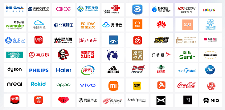 在商业化方面,易现通过与更多品牌、行业渠道、集成商、开发商等上下游合作,为产业链持续赋能。目前,业务覆盖文化旅游、游戏娱乐、互动教育、广告营销、展示展陈、智慧工业等领域。合作客户有很多国内外知名品牌,包括:咪咕、阿里、网易、京东、美团、瑞幸、哈根达斯、蔚来、宝洁、伊利、百事可乐、新华社、浙江卫视、完美世界、中华职教社等。