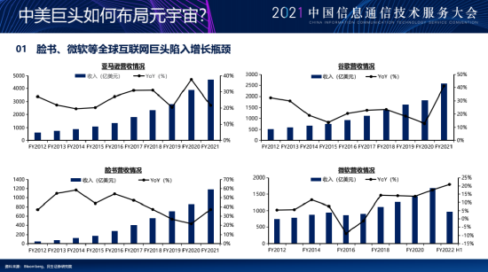 其实我们看过去几年大型的互联网公司的增长,又迎来了一定的瓶颈,特别是社交巨头脸书,为什么脸书在元宇宙方向上最积极?因为他的新的用户数的增长,包括存续用户数的留存,都迎来了相应的一个瓶颈,所以他们自己遭遇反垄断的背景下,一定要去谋求创新。所以我们看最近看到脸书又在讲虚拟币这个事情,它还是想建立这一套完整的一个经济系统。