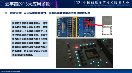 第十五个场景是能源场景,这个场景不被大家很多人去提到,但是我现在发现这个场景得到很多上市公司的认可,就是你天天讲元宇宙的大算力,但大算力需要大电流的配合,所以国家才开始在底层做了可持续能源的这样的一个部署,就是因为如果底层的能源是煤炭,是钢铁你还会做大量的部署吗?不会。