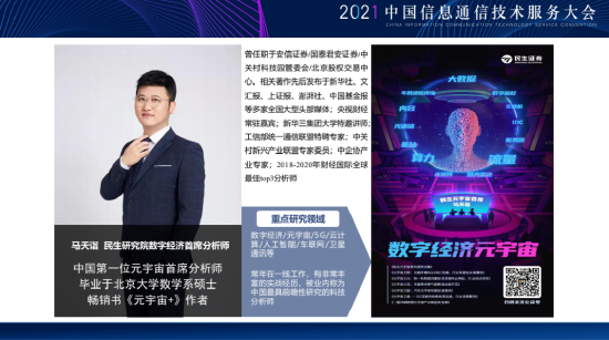 其中,民生证券马天诣从元宇宙是什么开始谈起,详细阐述了为什么元宇宙能解决当下互联网发展瓶颈问题,中美互联网巨头在元宇宙领域的布局,以及元宇宙未来的十五个应用场景,以下是马天诣演讲全文: