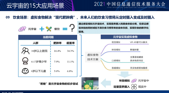 第九个场景是饮食场景。我们刚才讲的很多是视觉做了数字化,很多的生产制造做数字化,我们的味觉触觉啊吞咽感这些能不能做像样的一个数字化呢,这个就是未来为什么我说可能以后你看一个东西,或者他模拟一下你的味觉你就不饿了,而不是以前我们吃这种代餐粉,其实可能对身体是有伤害的,而这种感觉的模拟其实可能会更好。